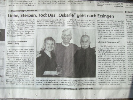Mundart-Theater-Preis des Landes Baden-Württemberg 2009 für das Duo "Sie & Er" aus Ersingen